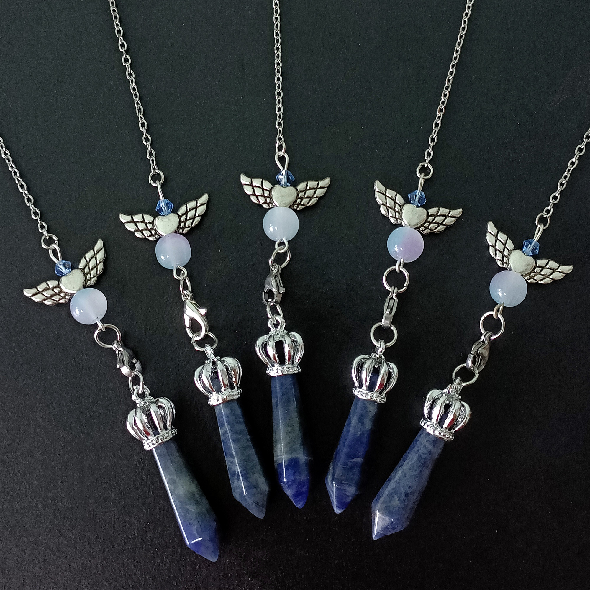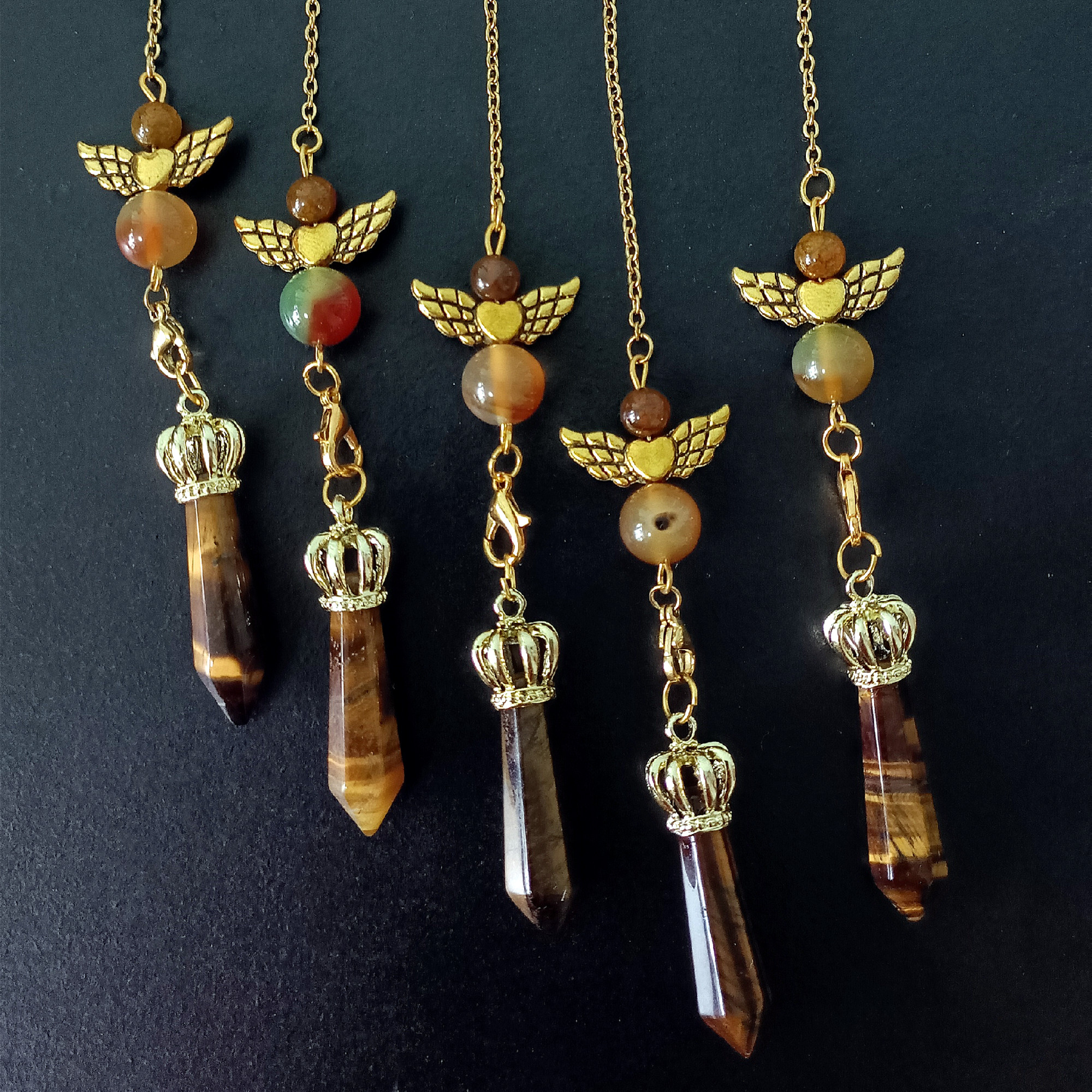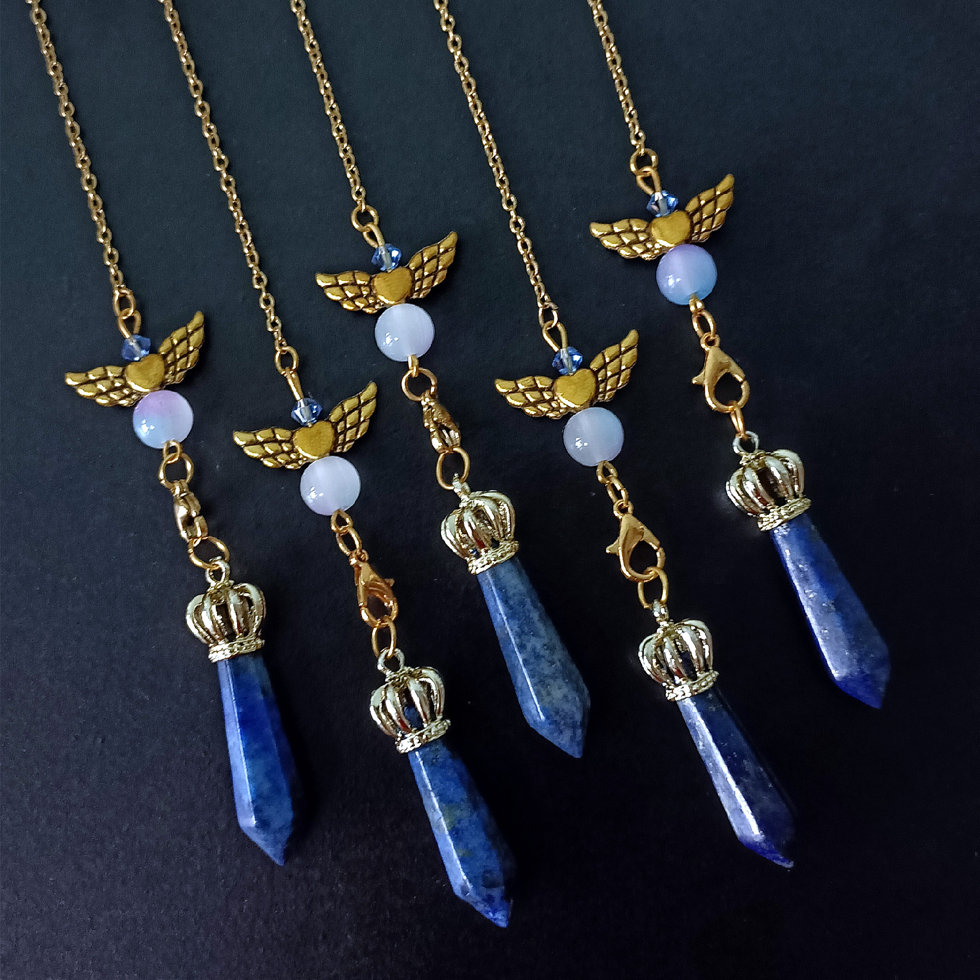Natural Gemstone Crystal Pendulum Mini Crown with Love and Angel Wings