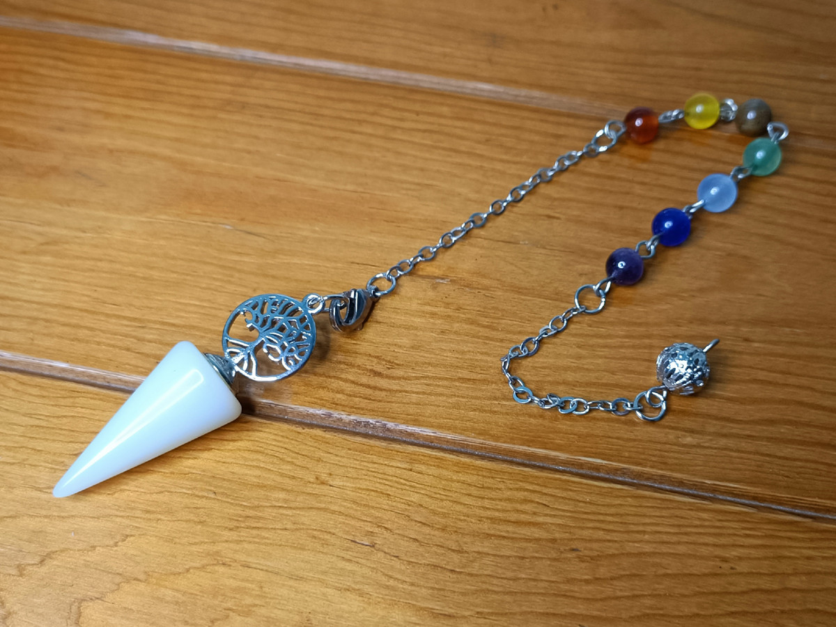 This pendulum is more than a mere tool; it is a work of art and a spiritual companion. When held in your hand, you’re holding a tangible symbol of growth, connection, and self-discovery. Whether you’re seeking answers, exploring your inner landscape, or simply admiring intricate craftsmanship, this pendulum invites you to delve into the realm of the unseen and unlock the wisdom that resides within. Let this pendulum be a source of inspiration, guidance, and alignment. Whether you use it for intuitive insights, energy work, or as a focal point for meditation, its presence is a reminder of the beauty that can emerge when nature’s elements and spiritual symbolism unite. Display it proudly as a centerpiece, a conversation starter, or a cherished tool on your journey of exploration and enlightenment.