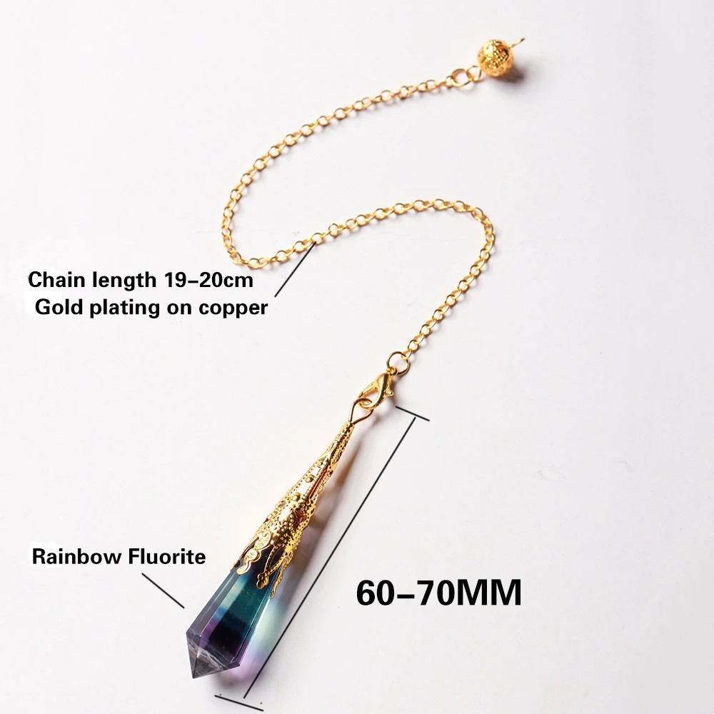 【Dowsing Pendulum】 Natural Rainbow Fluorite Quartz Crystal Pendulum (Energy Healing Pendant)