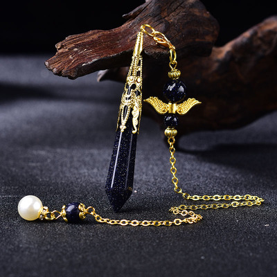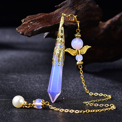 Adorning the pendulum are mini angel wings, exquisitely crafted to reflect the delicate grace of celestial messengers. The wings are a symbol of protection, guidance, and divine presence. As they gracefully embrace the crystal, they remind us of the angelic support that surrounds us in our journey of self-discovery and healing.