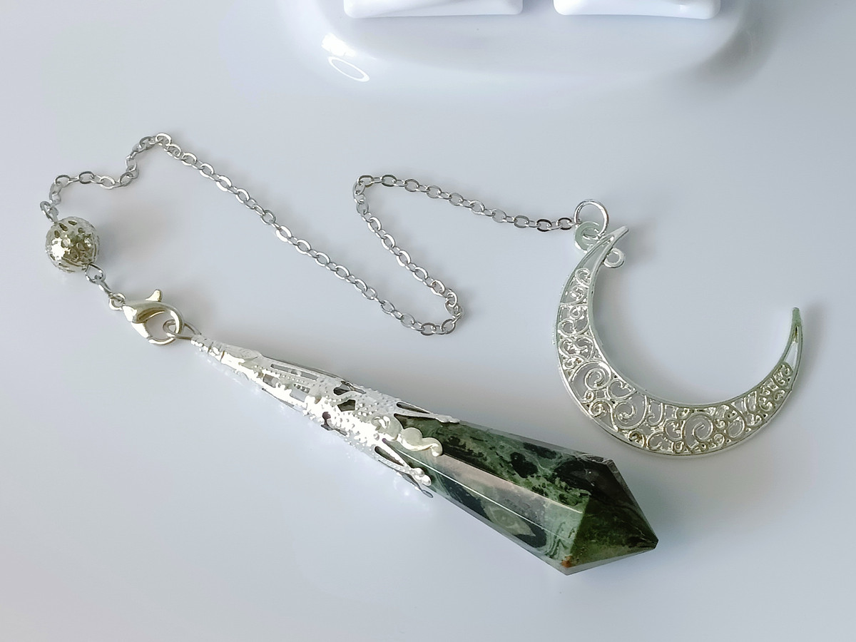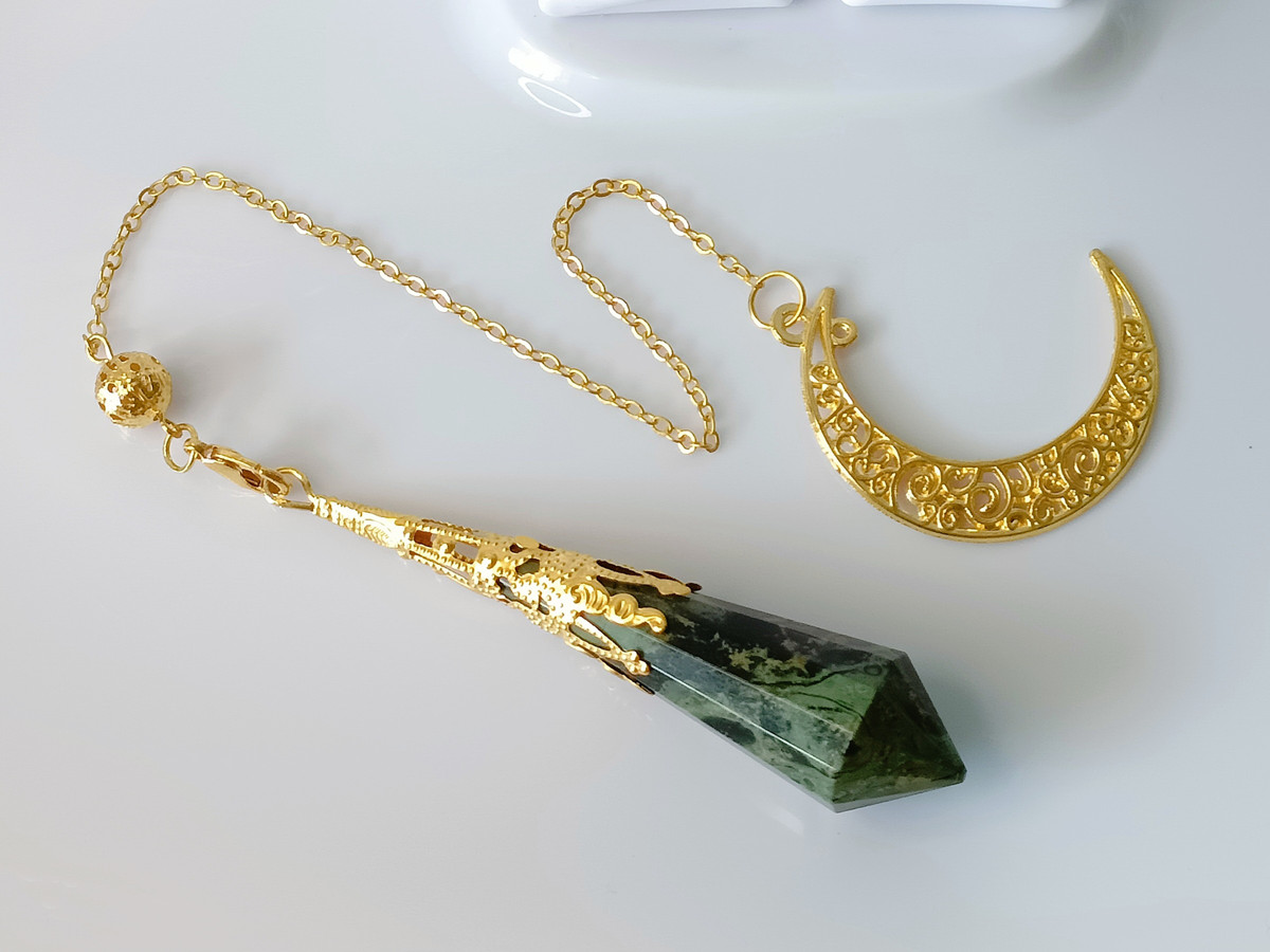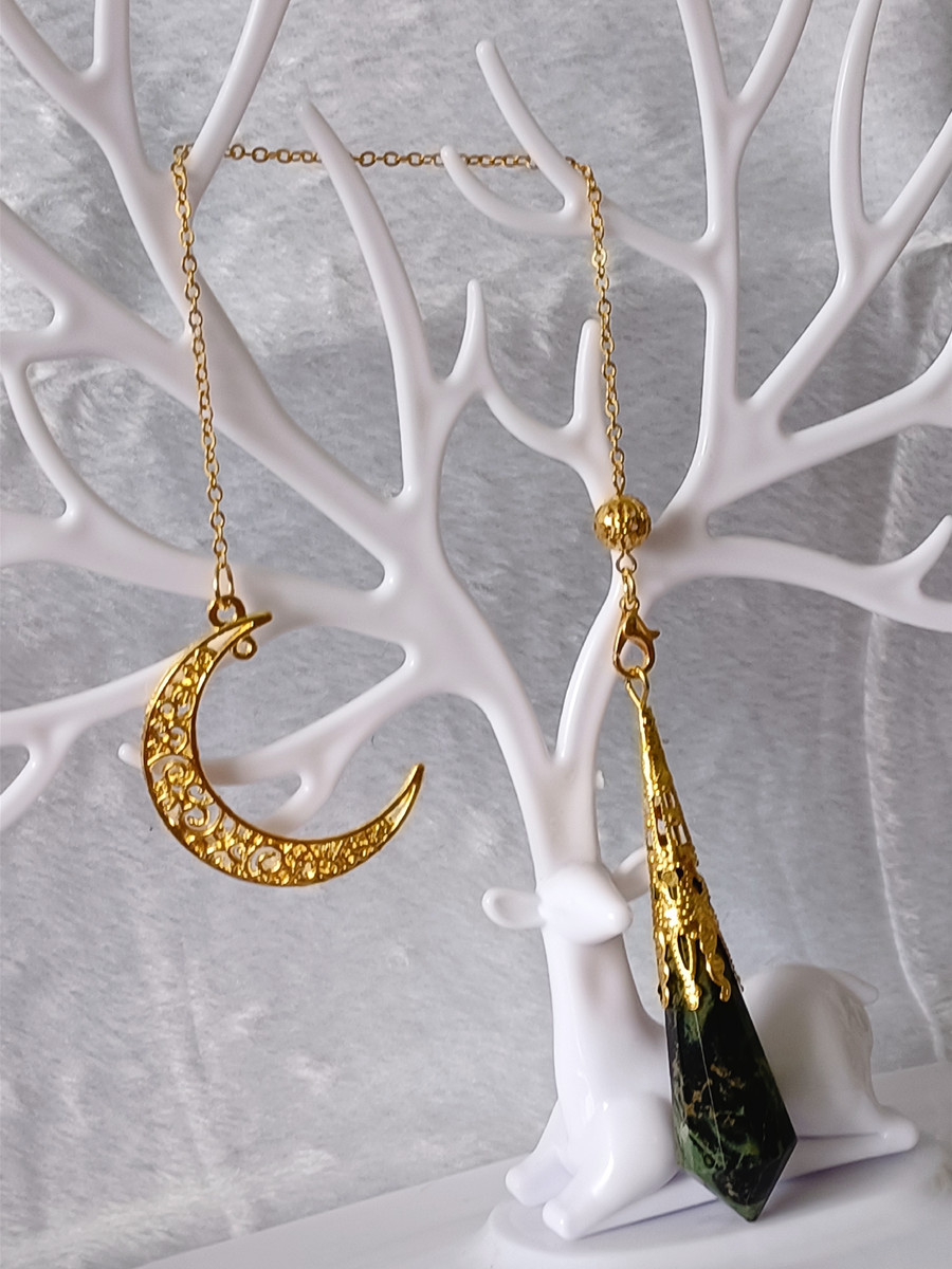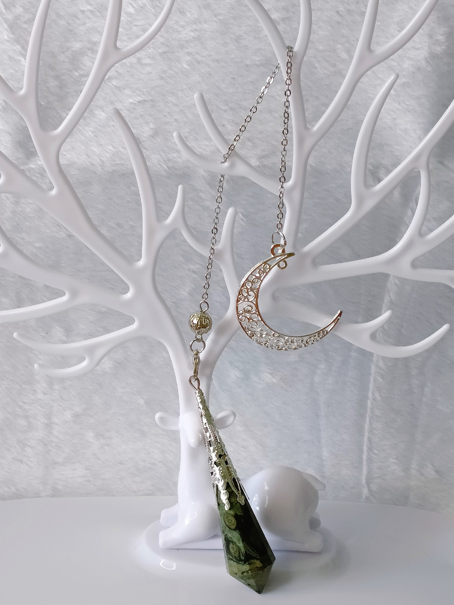 The crescent moon design adds an extra layer of symbolism and meaning to this pendulum. The crescent moon is often associated with new beginnings, transformation, and the divine feminine. It represents the cyclical nature of life and the constant ebb and flow of energy. When used in conjunction with the Peacock Eye crystal, this pendulum can help you tap into your inner wisdom and intuition, providing insight and guidance on your spiritual journey.