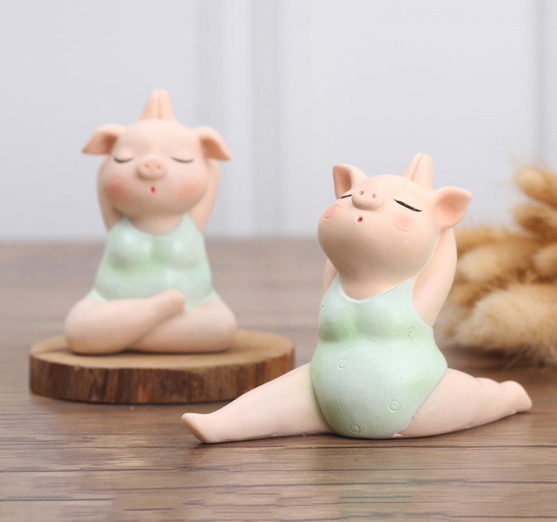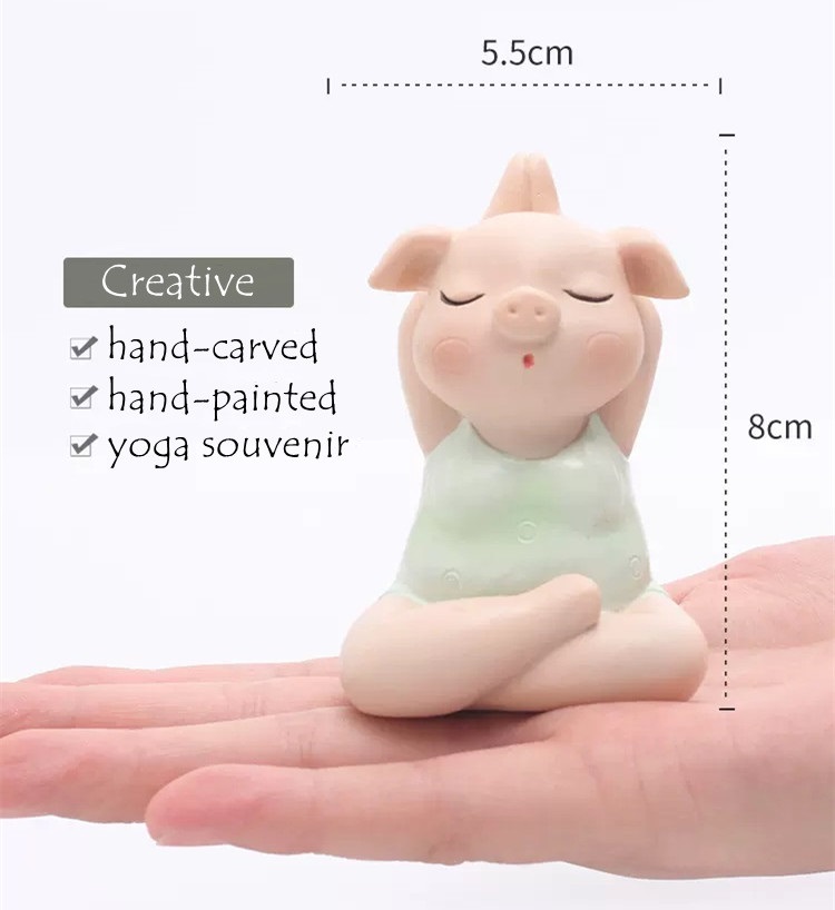 The yoga pig mini ornaments are designed creatively, hand-carved, and hand-painted. It is an excellent idea and a great gift for yoga lovers.